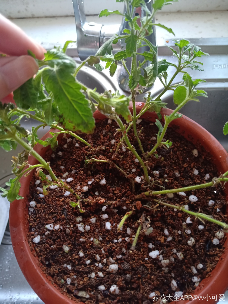 请大家看看,这个美女樱怎么救,不缺水,通风好,但是就是焉的,而且叶子耷拉枯萎