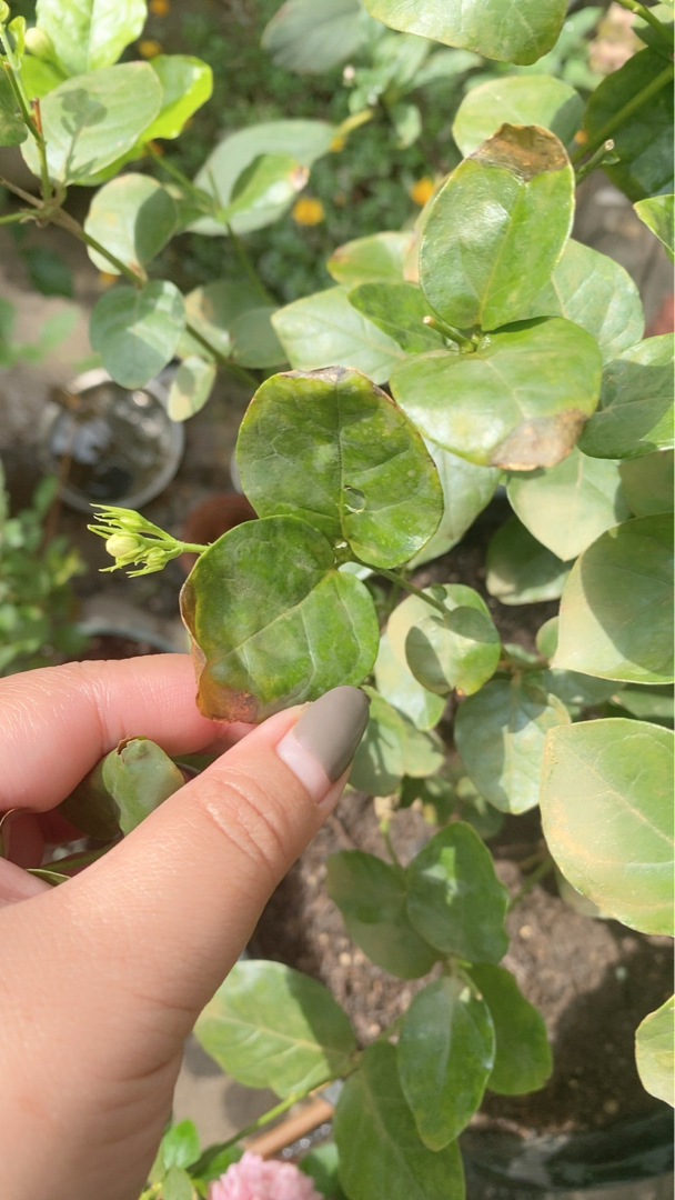 1,养了四个月,从很小养的变大3倍,还经常修剪,这几天突然老叶叶尖干枯发黑烂。也老叶片都有颜色不均,不止这几天。 2,日常大水大肥大太阳,室外养殖,坐标北京,这几天23-16度。夏天几乎每天浇水,现在一天隔一天浇,磷酸二氢钾,硫酸亚铁柠檬酸,三元素复合肥,都用的。 3,换盆用的营养土+松针,原来自带的土是园土,花盆透水也没问题,早就服盆了,开花好几波,一直没啥问题,长得很快,这三天突然叶尖出现严重问题,请大神指点,花花每天都照顾着,着急,在线等。挺急的
