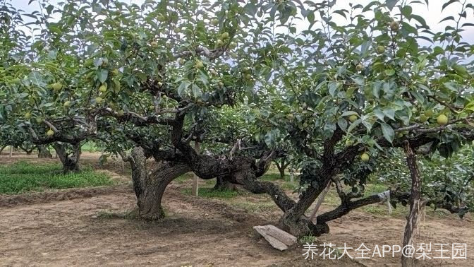 昨天到福锦果业莱阳百年梨园,发现梨农管理的百年梨树生命力依然旺盛,枝头都被梨压弯了,但是我看到树上的梨头被整齐削去一块不知道是为什么?